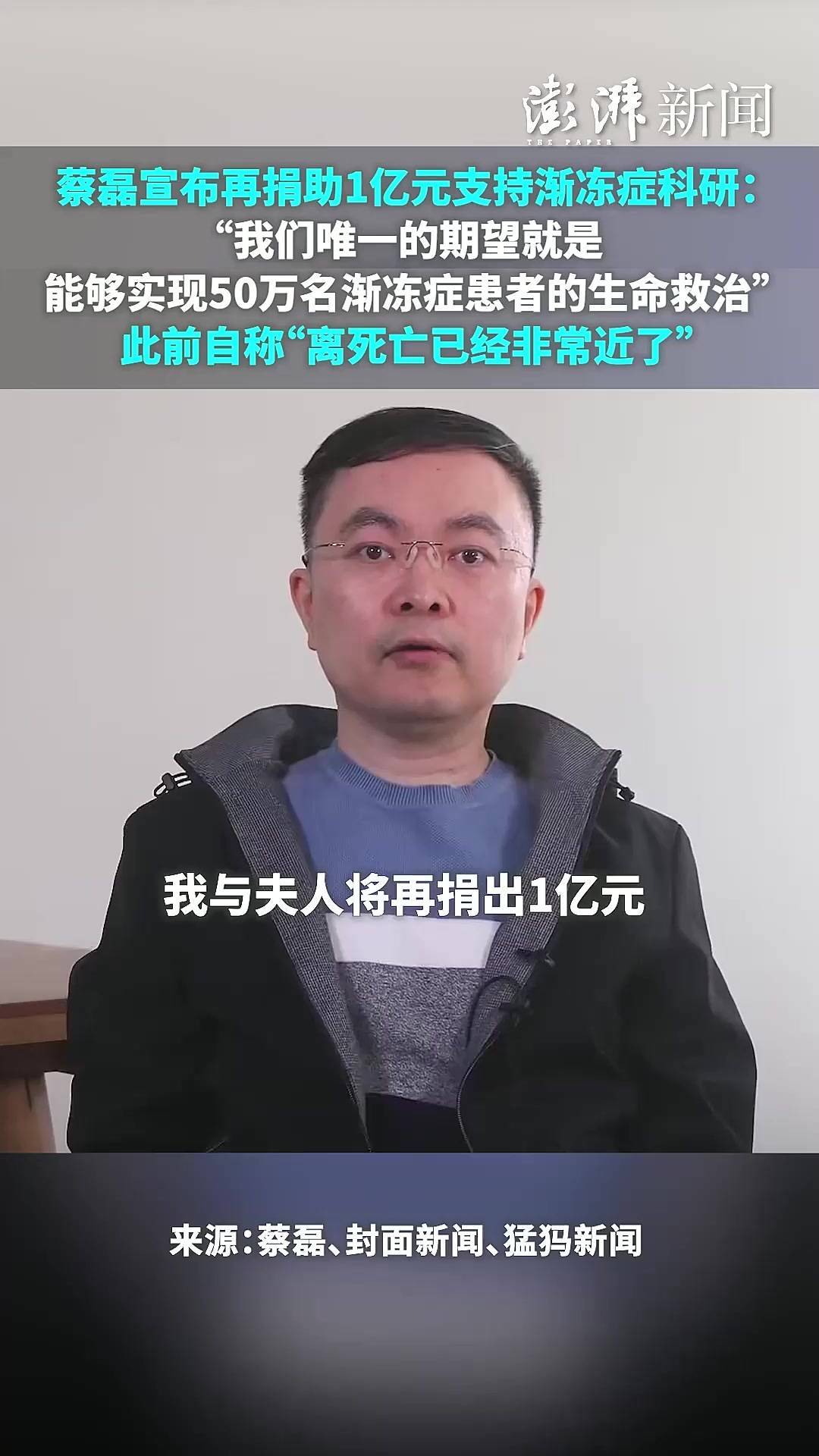 病魔没有饶过任何人。去年还能用变调嗓音交流的蔡磊,现在彻底成了“沉默的战士”:语言功能完全丧失,靠眼球转动在屏幕上拼出字句;体重掉到不足70斤,瘦得能看见肩胛骨的轮廓;整夜戴着呼吸机,痰盂要时刻摆在床头。但他办公室的灯总是亮到最晚,团队成员说“蔡总凌晨两点还在改科研报告”,病友群里每天都有他分享的新药进展。这个自称“斗战胜佛”的河南汉子,把十亿元身家全砸进了实验室,从可穿戴人工喉到基因疗法,连妻子段睿都跟着他一起住进了“战场”——他们带头捐出500万成立基金会,今年初又追加1亿善款,“就算治不好我,也要让后来人有药可吃”。